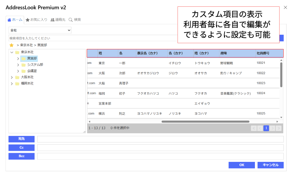 Outlookでのメール・予定作成の宛先選択に利用できる階層型アドレス帳