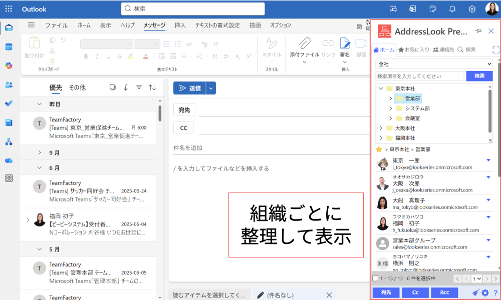 AddressLook Online(アドレスルックオンライン)は、Microsoft 365 のOutlook上で、