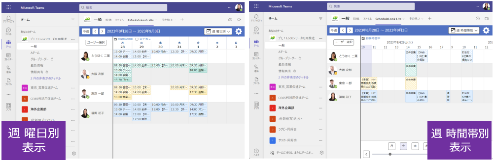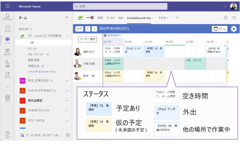 ScheduleLook Liteを使えば、自分の予定だけじゃなく、チームメンバーの予定もTeams上で確認できます。