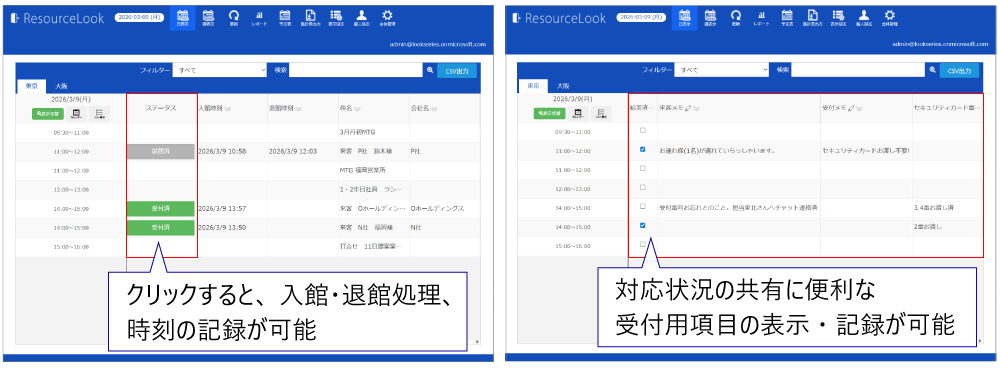 これにより、会議担当者と受付担当者の情報共有を効率的に行えます。