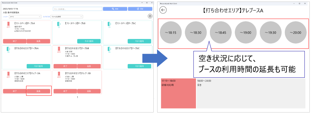 ブースエリア入口に端末をひとつ設置しておけば、予約から利用までスムーズに行い、限られたリソースも効率的に利用できます。