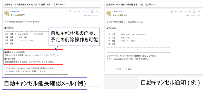 ResourceLookの自動キャンセル機能では、カラ予約を削減します。
